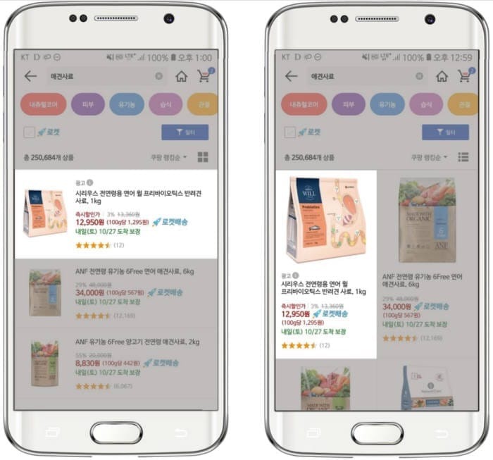 Coupangのプラットフォーム全体を見渡すと、ほぼすべてのページに広告枠が存在します。検索結果ページのバナー、カテゴリーページの商品リスティング、さらには注文完了ページにまで広告が配置されており、ユーザーの購買行動のあらゆる接点で商品露出の機会が用意されています。