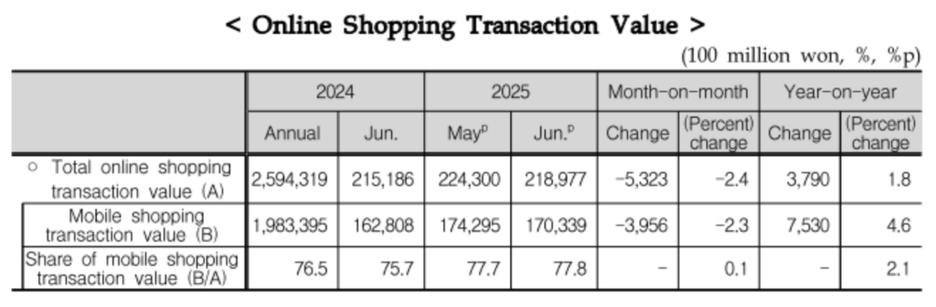 出典:Statistics Korea “Online Shopping in June 2025”